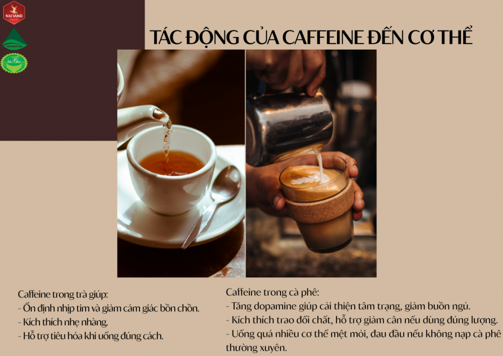 Khi bàn về lợi ích và hạn chế của các loại đồ uống, nhiều người quan tâm nhất đến tác động của caffeine đối với sức khỏe. Dù là caffeine trong trà hay caffeine trong cà phê, cơ thể đều có phản ứng rõ rệt, nhưng mức độ lại khác nhau tùy nguồn gốc và cách hấp thụ.