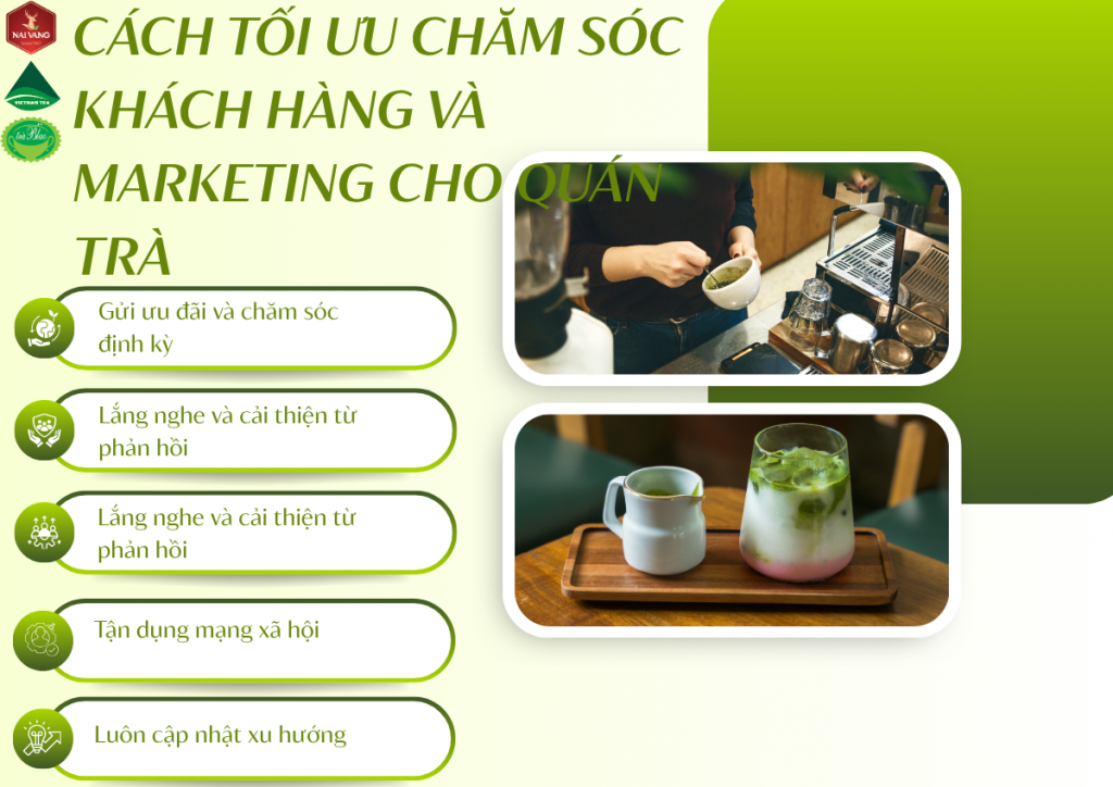 Bên cạnh sản phẩm, việc chăm sóc khách hàng quán trà và triển khai marketing hiệu quả sẽ giúp bạn giữ chân khách tốt hơn.