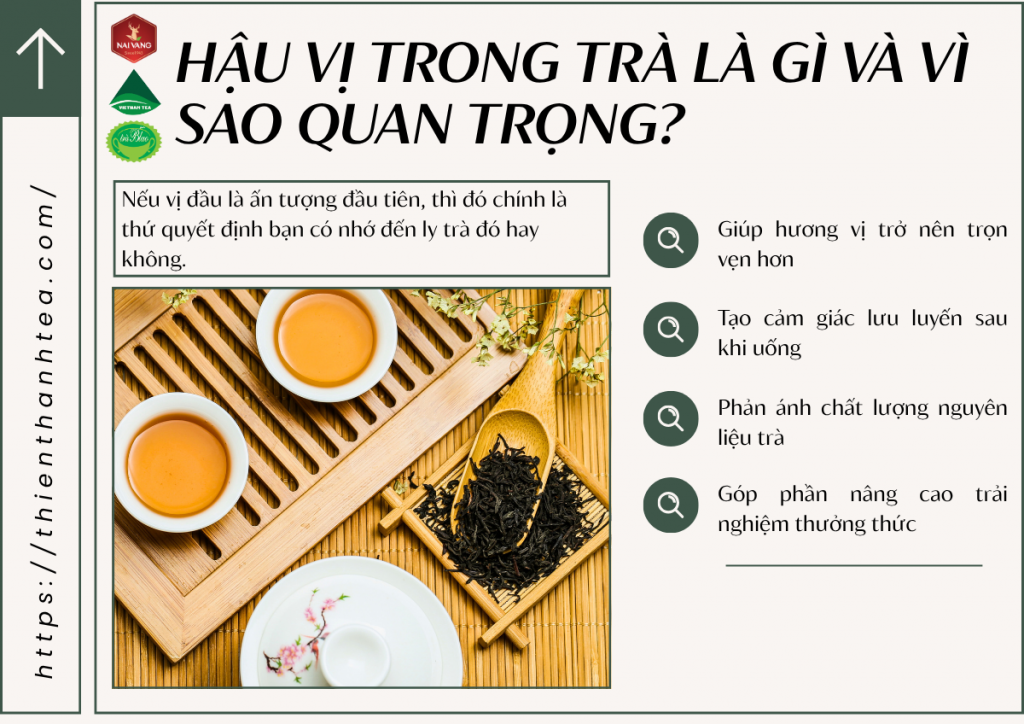 Hậu vị là yếu tố quan trọng tạo nên sự khác biệt của một ly trà ngon. Khi hiểu rõ, bạn sẽ dễ dàng nhận biết chất lượng trà và nâng cao trải nghiệm thưởng thức. Hiện nay, nhiều người ưu tiên lựa chọn Trà Thiên Thành nhờ hương vị ổn định và dễ tạo hậu vị dễ chịu. Nếu bạn muốn tạo ra những ly trà trọn vẹn, hãy chú ý đến phần dư vị sau khi uống bởi chính điều này mới là yếu tố khiến người ta nhớ mãi.